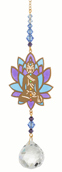 This serene, calming Buddha is surrounded by a chain of crystals that sparkle and shine in the sun.