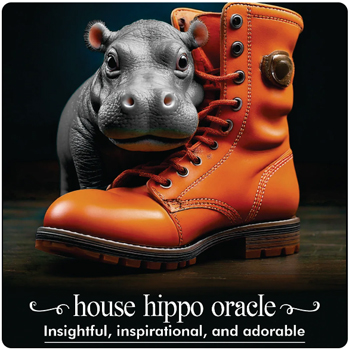 Welcome to the Hippoverse where nestled in sock drawers and rustling behind your cereal box, the House hippos have stories to tell and insights to share. Each card is a gentle invitation to discover magic in the mundane. Whether you are craving clarity or seeking affirmation, expect guidance hidden beneath couch cushions and truth that tastes like raisins. The House Hippos are ready ... if you know where to look.