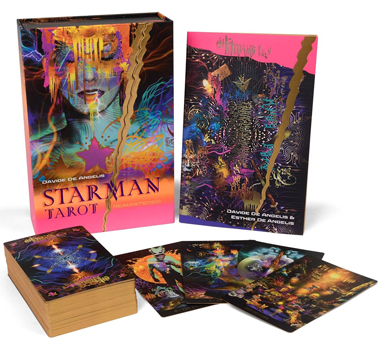 Artist Davide De Angelis collaborated with David Bowie for more than seven years, working together on the visual elements for the Outside and Earthling albums as well as design on art shows and books. The Starman Tarot is inspired by De Angelis and Bowie's creative interactions, a technoshamanic deck charged with sacred geometry, world mystery traditions and sacred futurism.