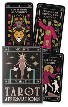 Born from the creative genius of popular artist Viki Lester and the deep knowledge of Theresa Reed, the Tarot Lady, Tarot Affirmations goes beyond the Rider-Waite-Smith tradition. Each card has an uplifting phrase that shifts your thinking so you can start creating the life you want on your terms. The usual arcana become inspiring beacons of positivity and strength, emboldening you to find the joy in every reading.