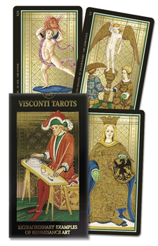 An absolutely stunning display of lavish gold foil and exquisite Renaissance art, this deck is pure magic and mystery! The shimmering gold reflects the light, seducing the intuition and delighting the eye. This deck is a treasure, truly a must-have for all Tarot enthusiasts. Originally commissioned in 1450 by the Duke of Milan, and attributed to Bonifacio Bembo, this is a reproduction of the oldest extant Tarot deck.