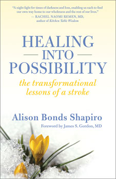 Alison Bonds Shapiro suffered two debilitating and nearly fatal strokes in her fifties. Today, after a remarkable recovery, she is an active business consultant, college board chair, engaged grandmother and motivational speaker. Healing into Possibility chronicles her experience as she discovered that her attitude would play the most important role in her remarkable recovery. The book is an uplifting look at the neuroplasticity of our brains and our human ability to grow and change.In this touching book, she teaches simple principles that anyone can use when faced with illness, injury or any other seemingly insurmountable problem. Readers will learn how to transform despair into hope and dead ends into possibilities. Positive, direct and inspiring, this book shares Alison's experiences and is also full of wonderful stories of others who demonstrate what is possible. We are there as Alison learns to walk again, faces other challenges one by one, and then applies the transformational lessons she has learned to the rest of her life.