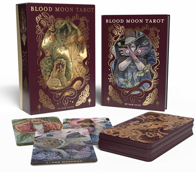 The Blood Moon Tarot as a home for their life stories and personal mythologies. The deck welcomes those whose hearts, minds and experiences draw them to weave their own tarot journey with the threads of imagination. The Major Arcana presents a series of enchanting, dream-like visions that guide you as you navigate the emotional landscapes within yourself. The Minor Arcana presents four unique suits: Dreams, Songs, Skins and Honey.