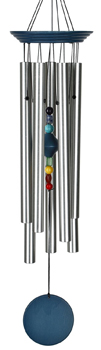 Tuned to chakra frequencies, this beautiful chime features seven chakra stones and blue color wood.