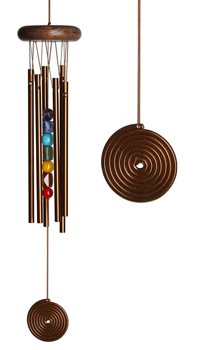 The seven stones of this wind chime's clapper are aligned in an ascending column, just as the seven chakras are aligned along the spine in the human body. The Woodstock Chakra Chimes combine color and sound to underscore the ancient meaning of the major energy centers of the human body.