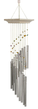 Material: White wash finish ash wood, 16 silver aluminum tubes, multi-color stone accents