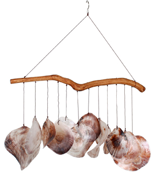 Hand strung, this chime is made of natural, renewable materials. The pieces used are hand selected and strung together with strong, invisible, nylon cord. The resulting chime has a distinctive look that is equally suited for a beach house or a beach-lover's garden. Let this chime's song remind you of the sand and surf every time the wind blows.