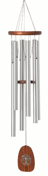 This elegant chime features a bright pentatonic tuning and an antique silver cast metal Tree of Life ornament. With its promise of eternal life, the Tree of Life myth exists across cultures, and dates back to ancient times. It is a representation of mankind, symbolizing how we are rooted on the earth even while we are reaching for the stars. Keep dreaming and remember to reach for the stars every time you hear this beautiful chime's soothing song.