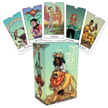 Created by the wildly talented Isabella Rotman, the This Might Hurt tarot deck is a cult deck with a strong following. Each card pays homage to the classic tarot imagery of the Rider Waite Smith yet is remixed to fit the modern-day tarot reader. After it exploded on Kickstarter, fans praised the deck for its relatable and inclusive approach to tarot. This Might Hurt is immediately accessible for those starting on their tarot journey and the perfect addition to any rebellious witch's collection. Many cards are lovingly crafted from portraits of real people in Isabella Rotman's life, ensuring that everyone gets the spotlight in magical spaces. This Might Hurt embraces the fact that sometimes, essential changes or fundamental truths might hurt at first... but after that, it will heal. This deck includes: