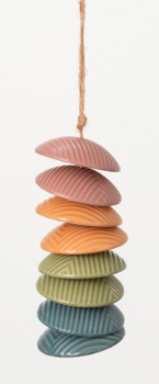Add a subtle decorative accent to any space with this multi-colored ceramic wind chime in pink, apricot, sage, and blue. Seven hand-painted, glossy stoneware clay disks sway with the breeze from an 18" jute rope. Its modern, artisanal construction looks as stylish hanging in your sunroom as it adorns your covered patio. For a more audible ambiance, hang two or more ceramic chime sets side-by-side for soft layered tones with every gust of air.