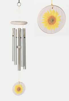 Fusing artistry and nature, this aluminum and whitewood chime celebrates the sun's radiant glory with its sunflower graphic. But visual appeal is just the start-each metal tube is hand-tuned to a pentatonic scale, resulting in soothing melodies that dance joyfully on the breeze. Whether swaying gently in a summer garden or singing through crisp autumn winds, the random patterns of wonderful sound promote a mindful atmosphere brimming with simple pleasures. More than mere decor, this fair-trade piece awakens the senses with its kinetic melodies and bright charm. Bring a touch of Zen to any outdoor oasis.