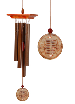 This chime features a sun motif windcatcher, made of beautiful amber-colored stone. The enchanting sound of this wind chime is the result of a special tuning using the "Golden Ratio." This ratio, discovered by the ancient Greeks, can be found throughout nature.